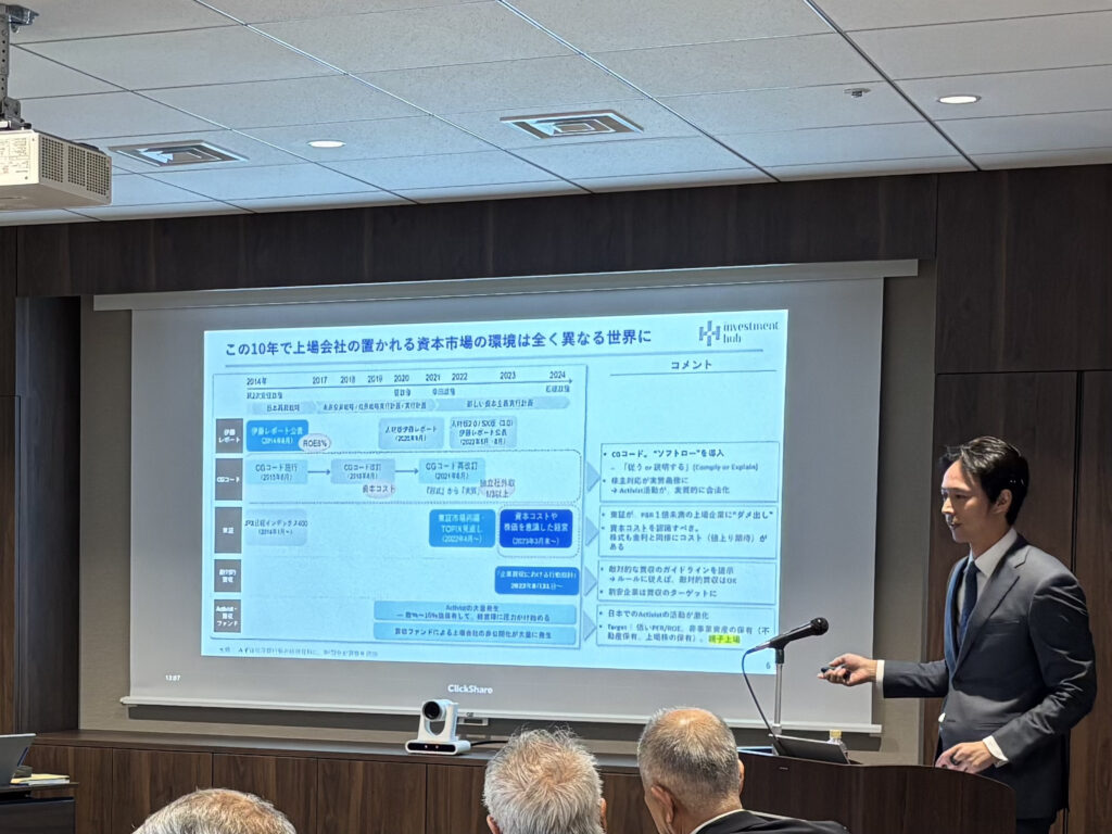 弊社の代表の田中が、先日、上場企業の役員層を対象としたクローズド研修に登壇し、「資本コストを踏まえた経営・ガバナンスの実践」について講義を行いました。 ■ 講義テーマ 「資本コストの実践理解と、株式市場から見た自社の…